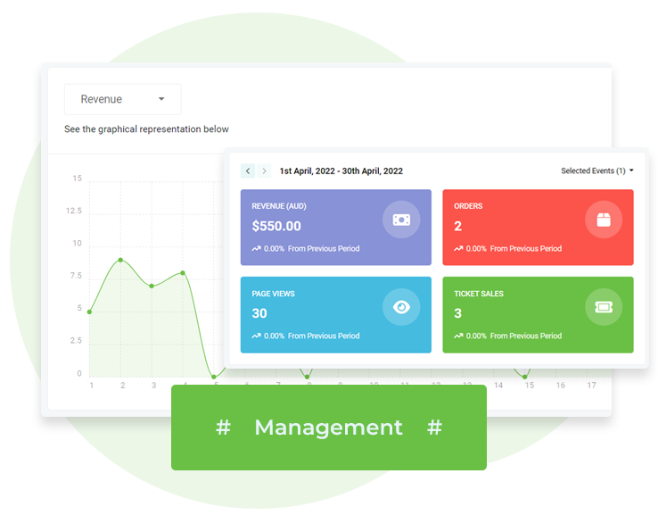 Track your event engagement metrics like visitors, ticket sales, etc. from your dashboard.